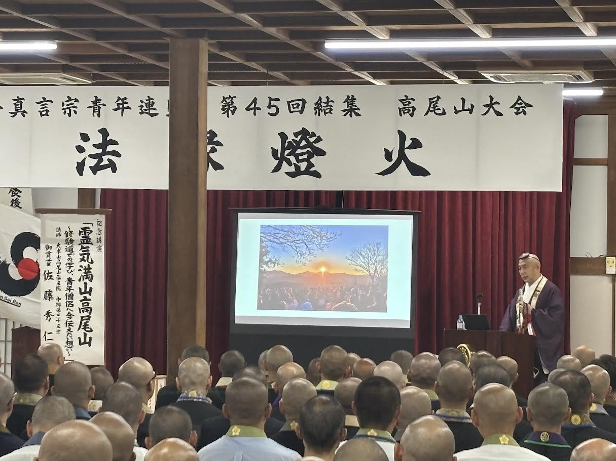 徳島 長樂寺 瀧本祥寛第45回結集高尾山大会に参加し、真言宗長者、高野山真言宗管長、総本山金剛峯寺座主、長谷部真道猊下のご垂示で、仏教の教えを「現代世界に順応するテーマである」とし、空海の言葉で「法は人に順って広まる」を引用され、真言密教の現代性を強調されていました。 真言宗智山派管長、総本山智積院化主、吉田宏晢猊下のご垂示では、国際情勢やAI時代への問いかけと、「正しき智慧と慈心」による秩序の回復の必要性というお話は仏教が担うべき役割なのかなと思いました。 二日目は柴燈護摩供火生三昧火渡修行という貴重な行事に参加させていただきました。荘厳な法螺の音と共に山伏の方々が厳かに儀式を進める中、炎が勢いよく燃え上がる様子は圧巻でした。火渡りでは、熱い炭の上を素足で歩く瞬間は数歩ながらも心身の全てが研ぎ澄まされたようでした。渡りきった時には、大きな安堵感がありました。 今回のテーマでもある「法縁灯火」の如く、真言密教の教えと、自らの行いによって得られる功徳を体験できたことは、何物にも代えがたい経験をさせていただきました。この清らかな気持ちを忘れずに、日々の生活において精進していこうと感じました。
