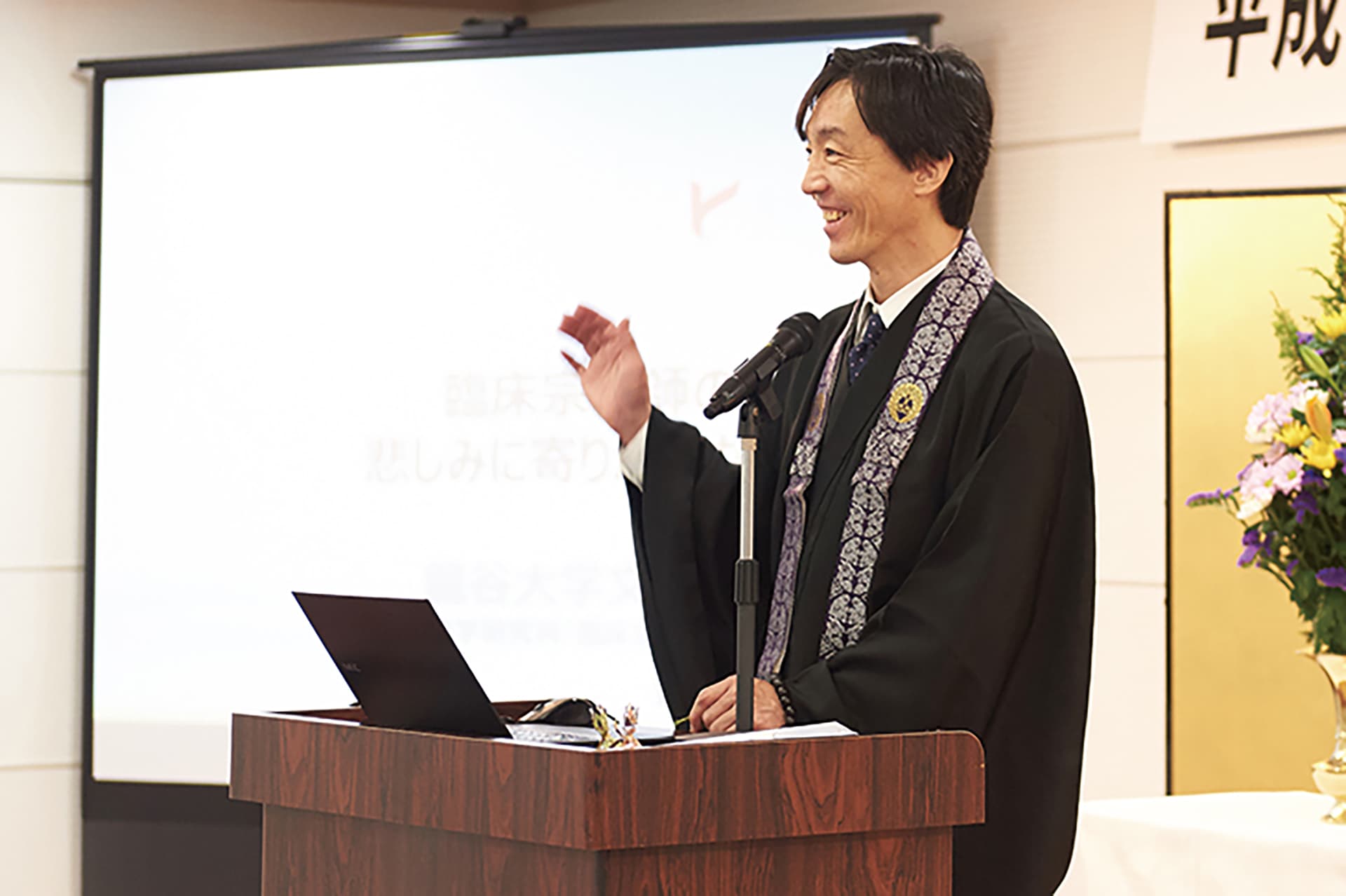 備中 蓮福寺 西原浄光去る平成二十九年二月二十二日、「大災害の悲しみに寄り添う~僧侶の社会的役割とは~」を演題として龍谷大学文学部教授の鍋島直樹先生の研修会に参加させていただきました。まず、災害等で受けた悲しみについてどう受けとめるか、そしてそれをどう乗り越えていったらよいのかというテーマから、多くの素晴らしい文書や歌、言葉をユーモアたっぷりにわかりやすくお話しくださいました。また、東日本大震災において現場にて経験されて感じた事のお話や「皆さんの心の支えは?」というお題にグループトークをして参加者それぞれの意見を交換しました。その中で、「寄り添う」とはなにかという問いに、相談者に対して人と人としてまず「相手に学ぶ事」が大事であり、そしてその中で宗教者として「御教えを伝える事」が重要だと仰いました。日々、僧侶として活動する中で「相手の想いを尊重する事」は忘れてはならない大切な事であると改めて思いました。研修会終了後は三津寺にて荘厳な雰囲気の中、自然災害物故者慰霊法要をお勤めさせていただきました。昨今、「臨床宗教師」が注目を集めています。現場において宗教者が担う役割がいかに重要であるか改めて考えるよい機会になりました。