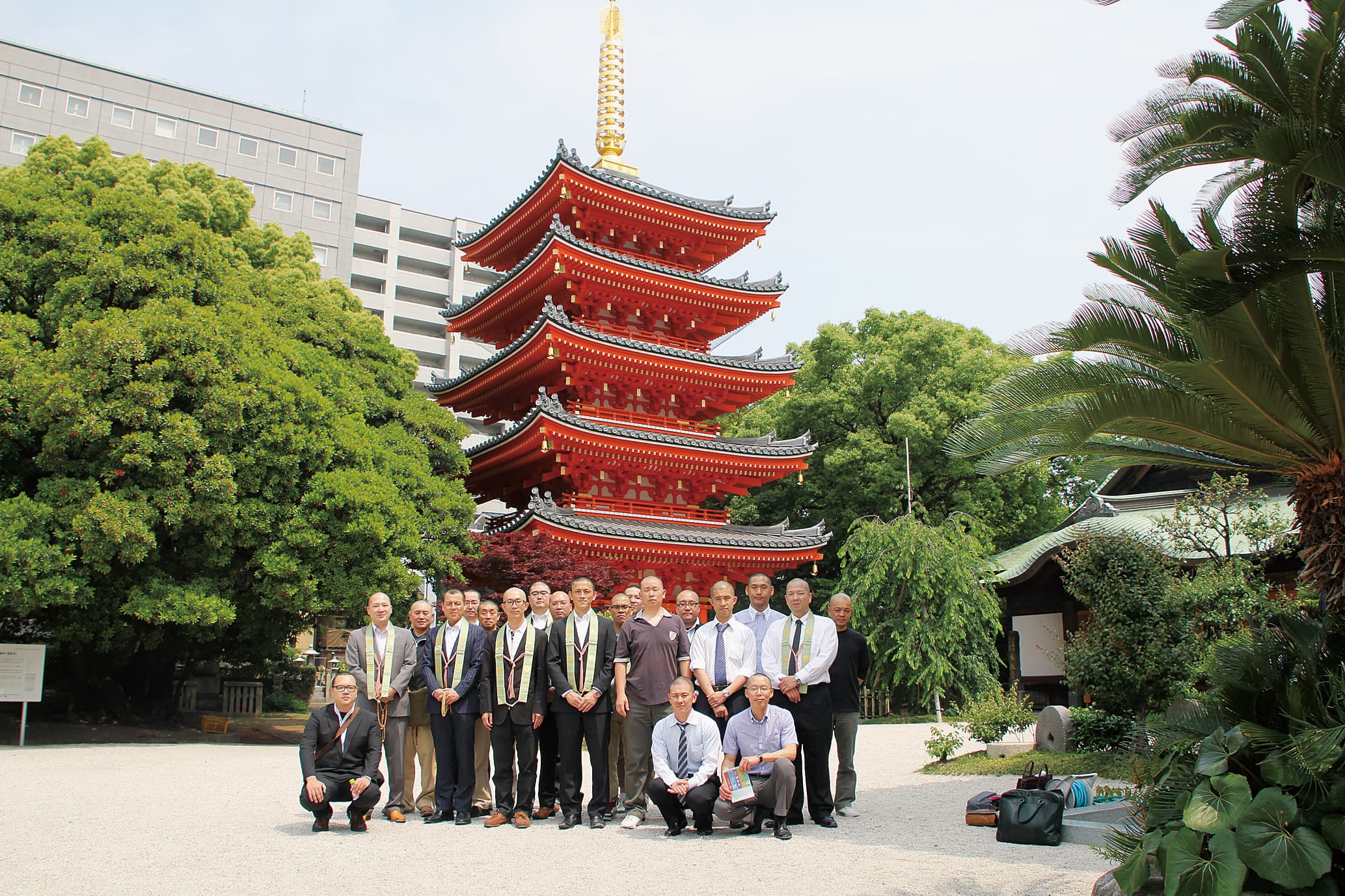 広島 明星院 八木宏雅去る、五月二十二日、二十三日ホテルレオパレス博多におきまして、平成二十五年度真言宗御室派青年教師会の総会・研修会並びに福岡御室青年会結成十周年記念式典・懇親会が開催されました。 研修会では、慶応義塾大学講師で明治天皇の玄孫に当たられる旧竹田宮家の竹田恒泰先生に「天皇と空海」という講演をしていただきました。 先生の「神話を学ばない民族は滅びる」という言葉が大変印象強く、研修内容もお大師さまの歴史の中で天皇との重要性、関係性を大変わかり易くお話しいただきました。 また祝賀会の場でも終始たくさんの参加者が先生とお話をされ、それぞれの質問・疑問や意見にとても丁寧にご対応してくださいました。 二日目の市内観光では、地元のボランティアガイドの方に博多の寺社をご案内いただきました。櫛田神社では、以前から一度見てみたいと思っていた山笠を見ることが出来、またお大師様が日本で最初に開かれた真言宗寺院で福岡大仏として有名な東長寺へもお参りすることができました。このお寺以前は御室派に属されていたと後に知りました。承天寺では、境内の見事な枯山水に参加者一同魅入りながら、住職様の和やかなお話に耳を傾け安らいだひと時を過ごしました。一泊二日の研修でしたがとても充実した内容で、自身の普段の僧侶としての在り方又、知っておかなければならない歴史等大変勉強になりました。最後にこの度準備から当日まで大変な配慮をされました、福岡御室青年会の皆様と真言宗御室派青年教師会の会員の皆様の益々のご健勝とご隆盛を祈念申しあげます。
